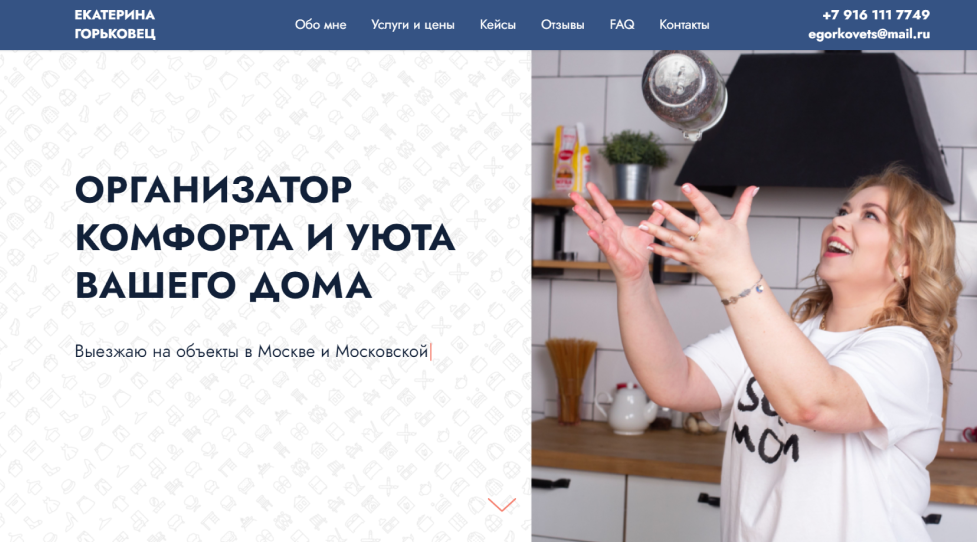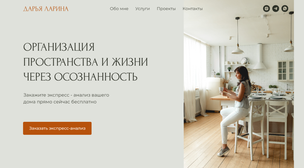 В работе с вами понравилось абсолютно всё: качественно выполняемая работа в срок, необыкновенный вкус, понимание потребностей и запросов клиента, приятная бережное, профессиональное, интересное общение. Ну и конечно результат поразил, и превзошел все мои ожидания. Он был намного лучше чем я даже могла себе представить. Во время создания выдавали очень правильные и интересные корректировки и идеи, которые в корне изменили структуру сайта, и он стал ещё более прекрасным.